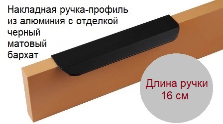 Трендовые ручки-профиль из алюминия с отделкой черный матовый бархат. Длина ручки 16 см.