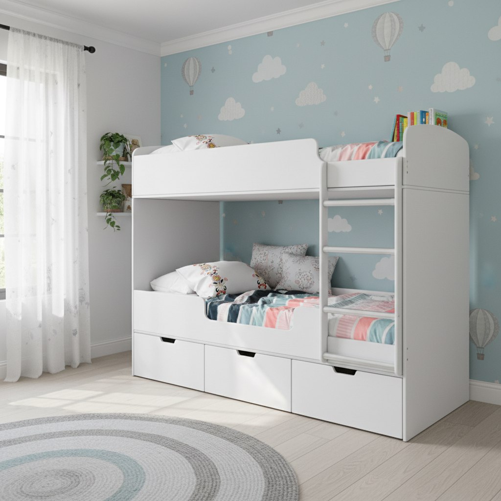 Компактная двухъярусная кровать Малыши Двойняшки создана специально для небольших помещений.