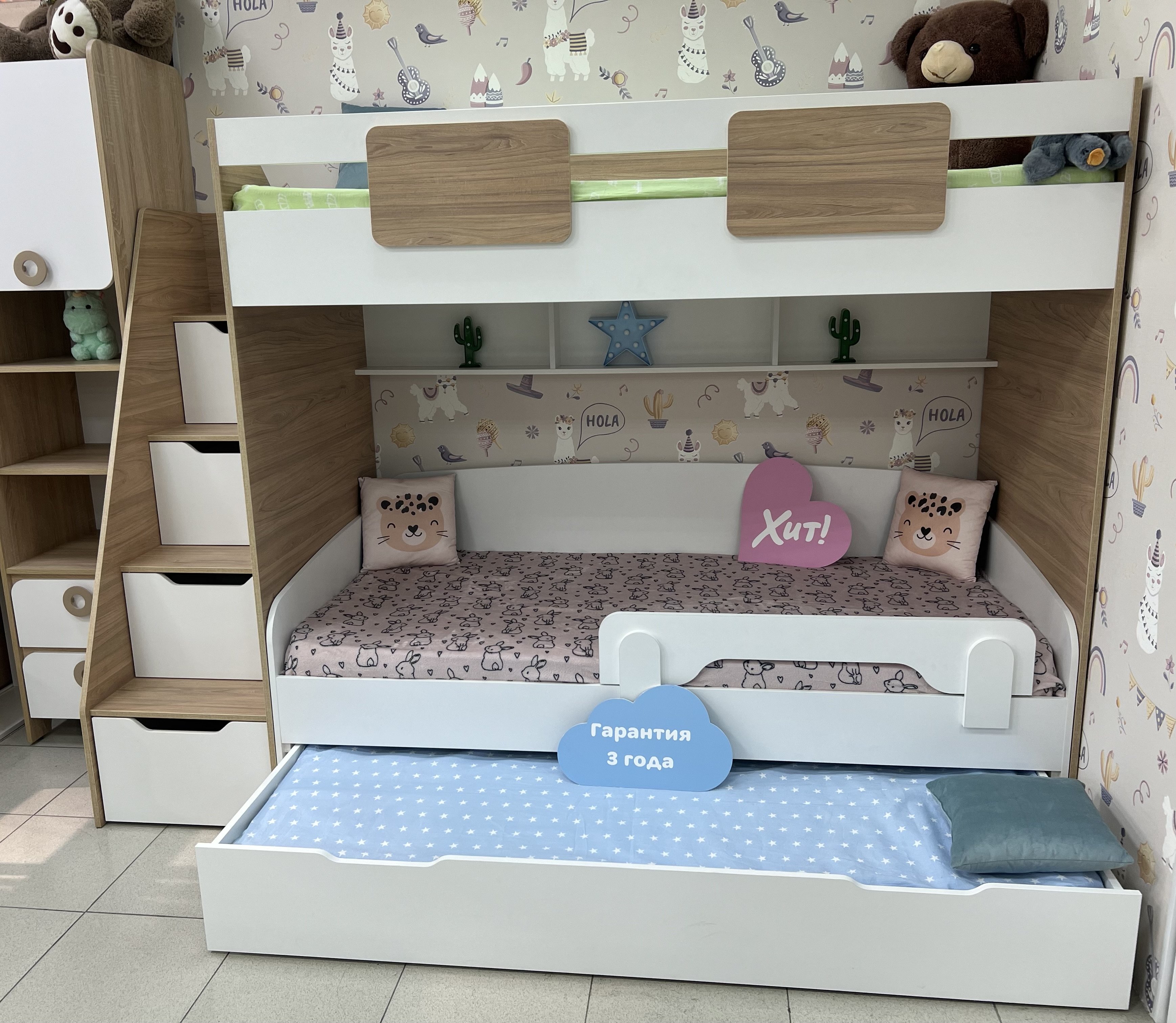 Вместо них - цельный и прочный настил из ЛДСП, который выдерживает сверхвысокую нагрузку и позволяет расположиться даже взрослому с ребенком.