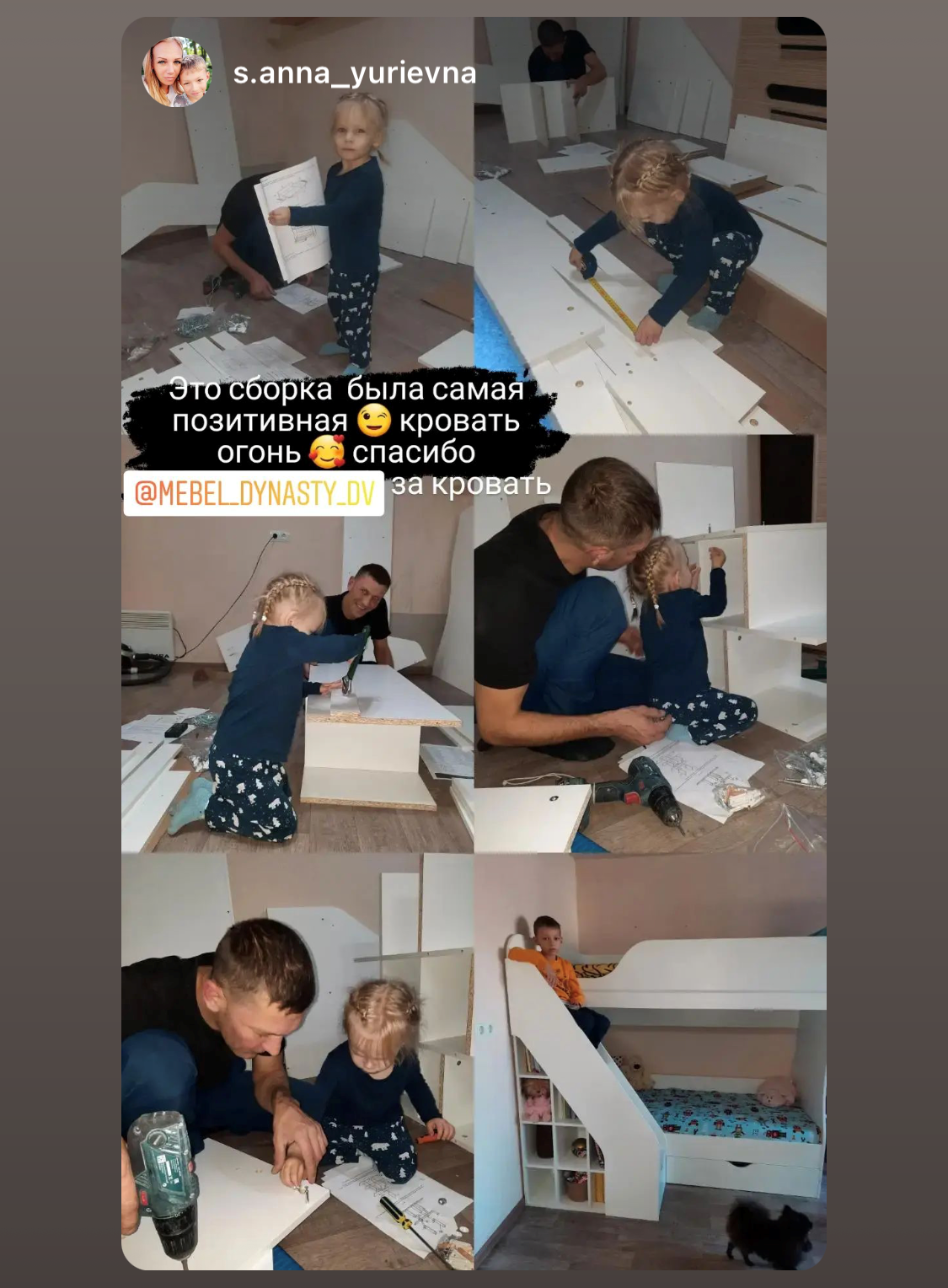 <virtues>Обновили детскую комнату. Правда, интерьер полностью еще не готов. Зато кроватка уже стоит! Это главное) Нужна была двухъярусная кровать для детей, по совету подруги купили в этом магазине. По цене нас устроило, и качество хорошее. Доставили во время без сколов и трещин. Спасибо вам!</virtues>