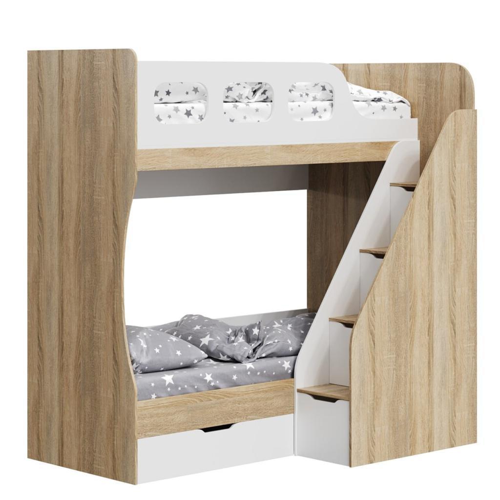Высокая нагрузка на спальные места. Удобная лестница с ящиками. Высокий, безопасный бортик |