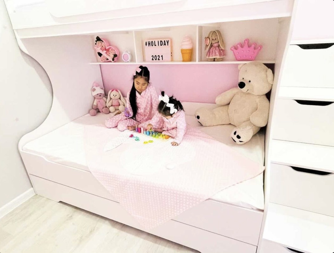 Увеличенное, просторное нижнее спальное место позволяет комфортно разместиться ребенку вместе со взрослым.