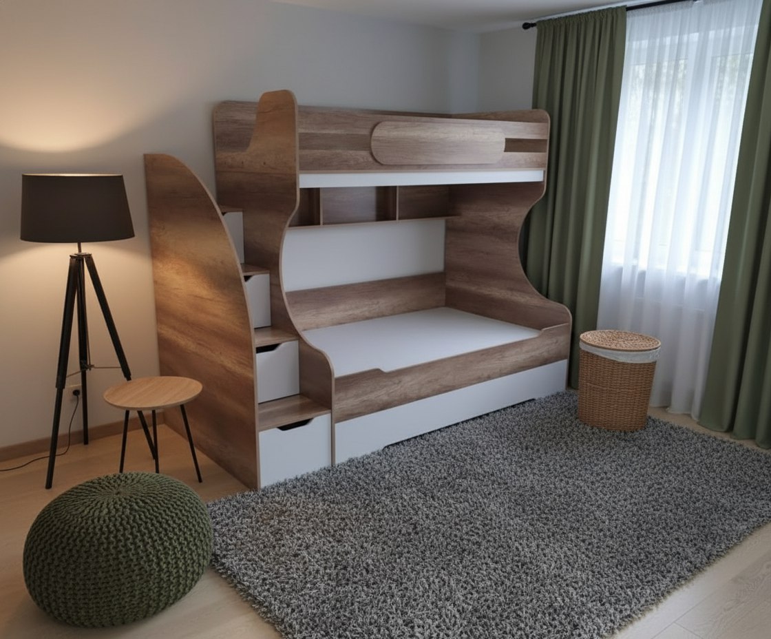 Высокая нагрузка на спальные места. Прочные ящики. Высокий, безопасный бортик
