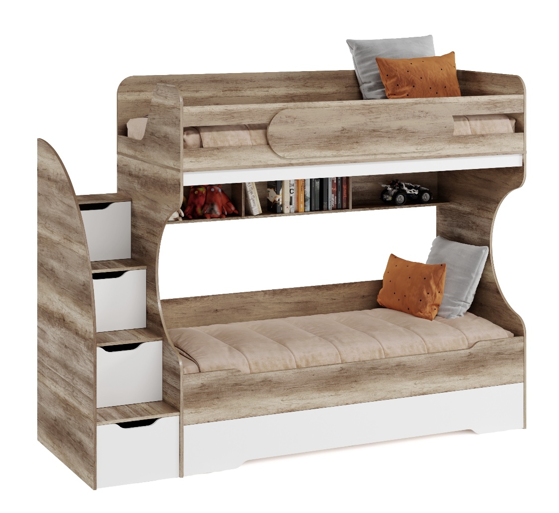 Вместо них - цельный и прочный настил из ЛДСП, который выдерживает сверхвысокую нагрузку и позволяет расположиться даже взрослому с ребенком.