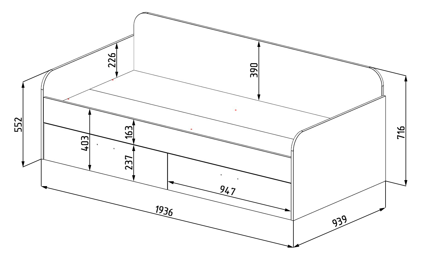 Габариты кровати: высота 2240 х глубина 826 х ширина 2808 мм