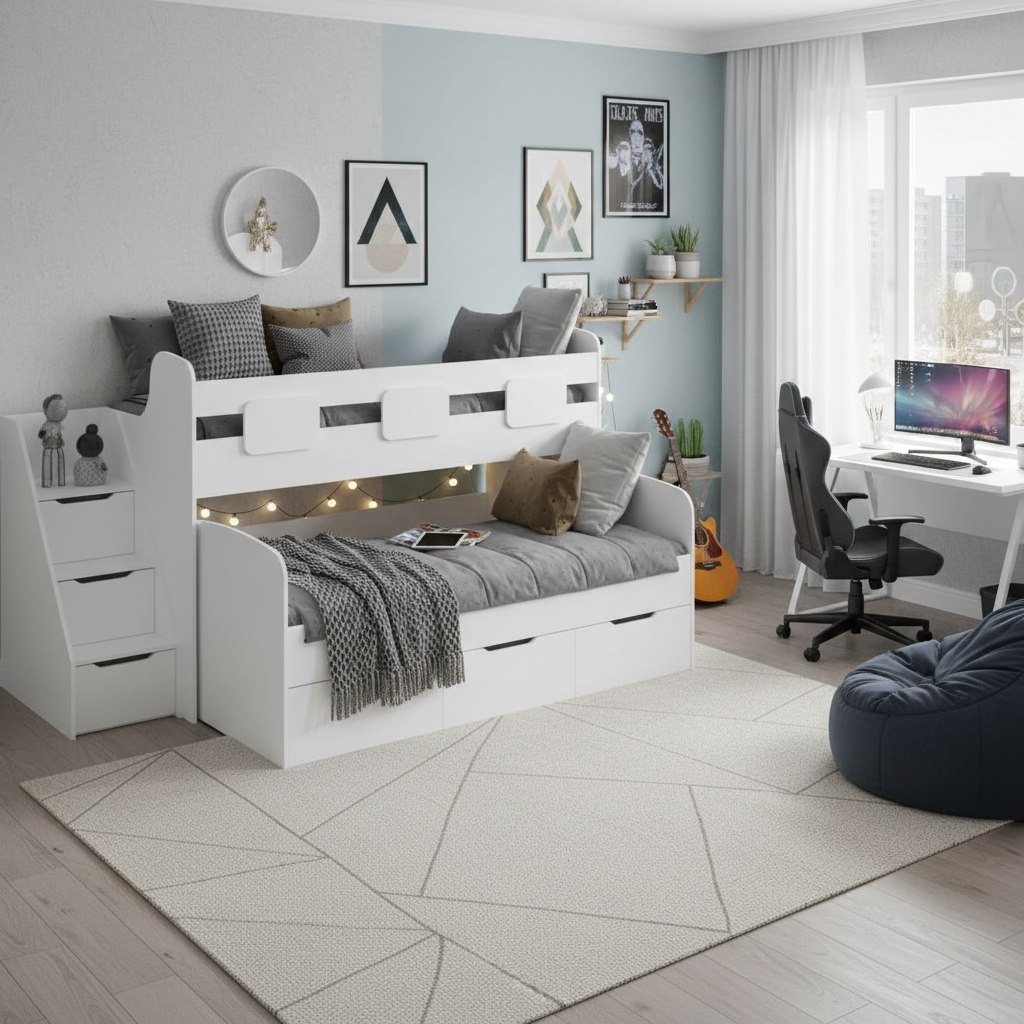 Ваше Уютное Пространство с нашей популярной двухъярусной кроваткой "Городок"!