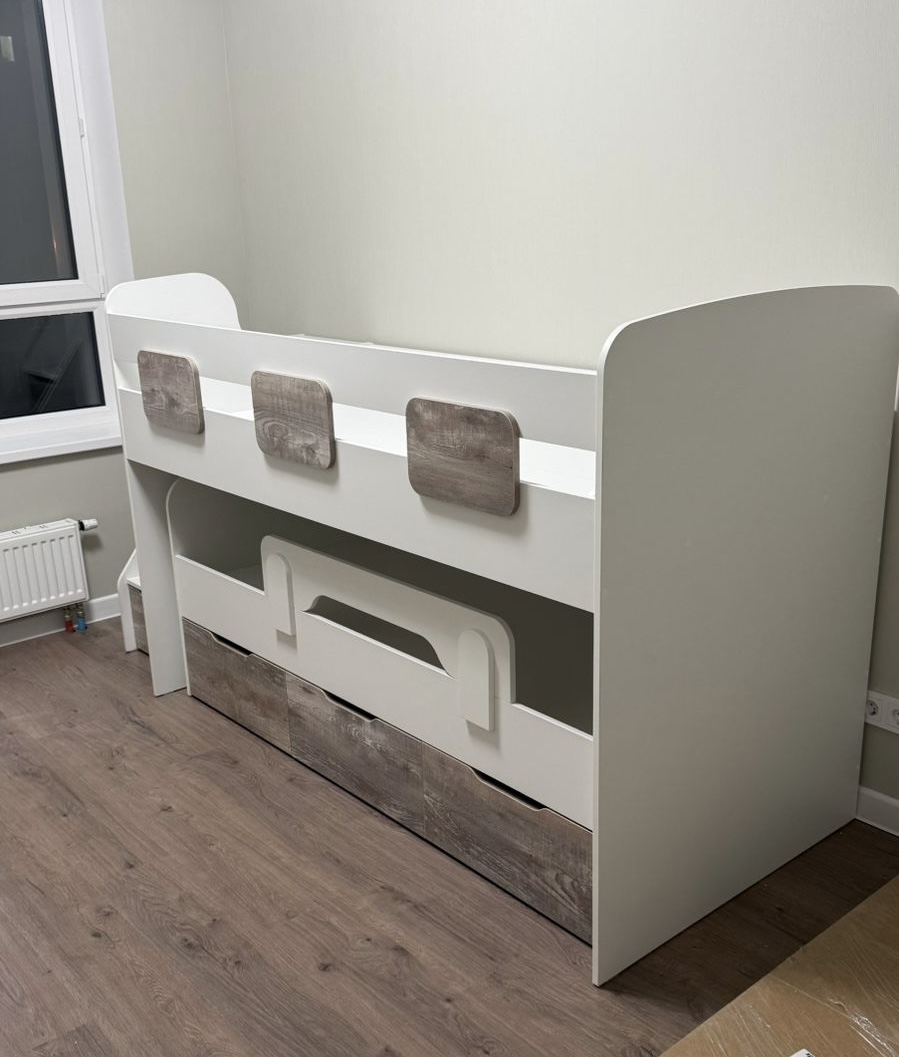 Вместо них - цельный и прочный настил из ЛДСП, который выдерживает сверхвысокую нагрузку и позволяет расположиться даже взрослому с ребенком.
