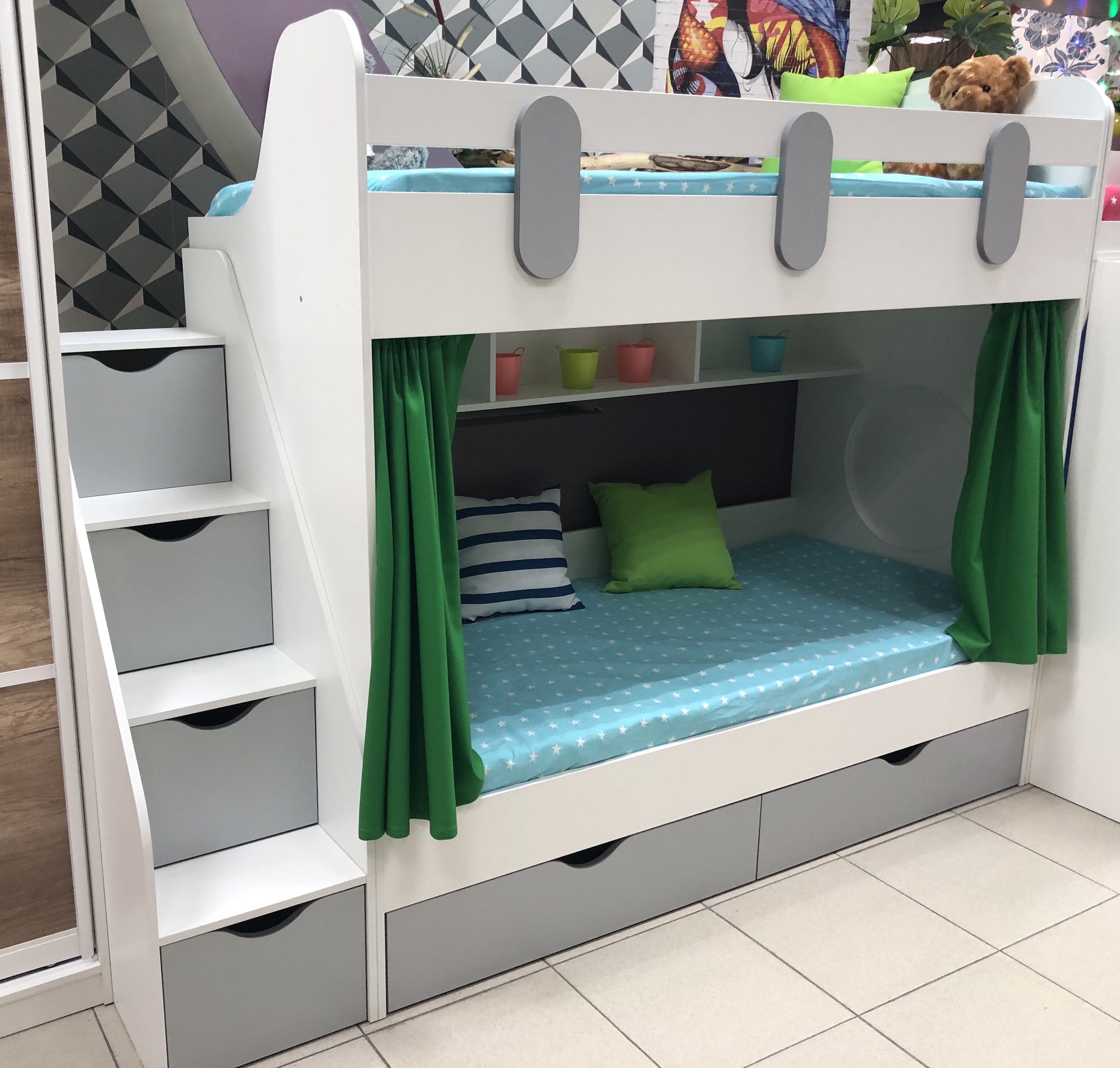 Модульные комнатыТрехъярусные кровати Односпальные кроватиКровати-чердакиЧетырехъярусные кровати Шкафы, стеллажи, пеналыКомпьютерные и письменные столыНавесные-настенные полкиКомодыКомплекты мебелиМатрасыМебель для родителей