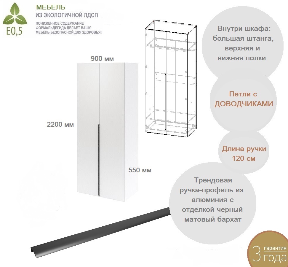 Материал: сертифицированное, качественное, экологически чистое ЛДСП Е0,5 в белом цвете.