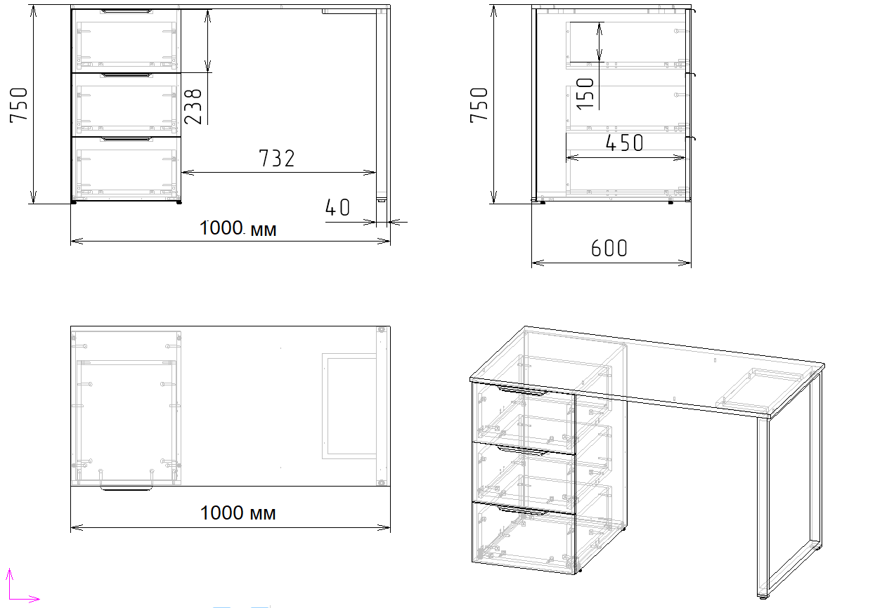 ширина 1000 х высота 750 х глубина 600 мм