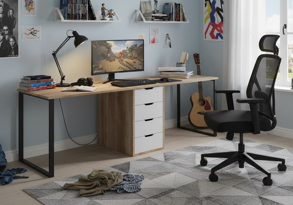 Стол для двоих детей - отличное решение для небольших комнат.