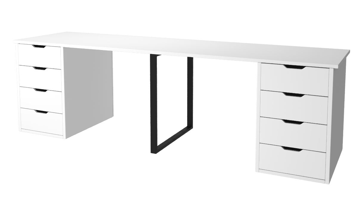 —Стол Дуэт 2400 мм (две тумбы) белый + опора черная. Столешница 22 мм