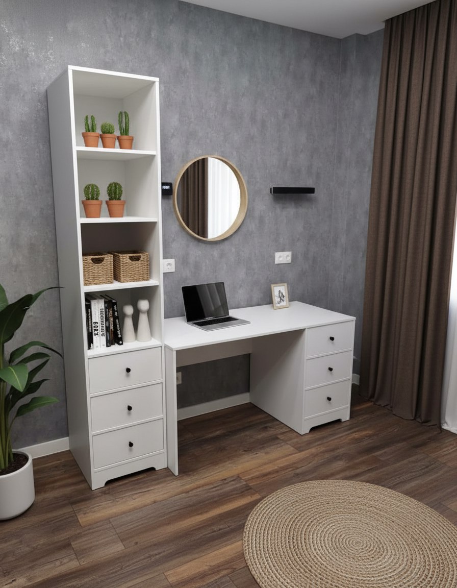 * В стол встроены три выдвижных ящика на направляющих скрытого монтажа с ДОВОДЧИКАМИ.
