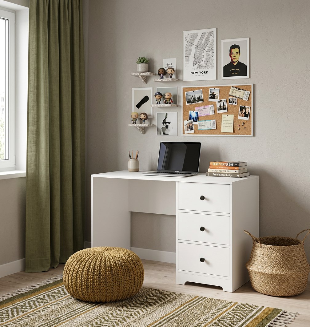 В стол встроены три выдвижных ящика на направляющих скрытого монтажа с доводчиками.