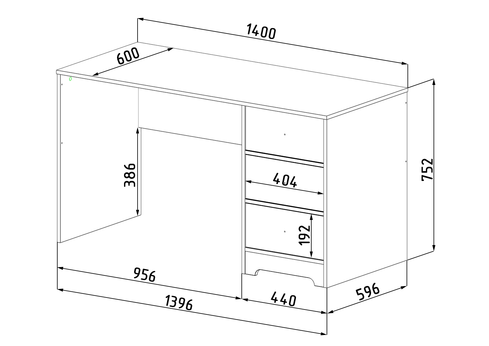 Габариты стола: ширина 1400, глубина 600, высота 752 мм