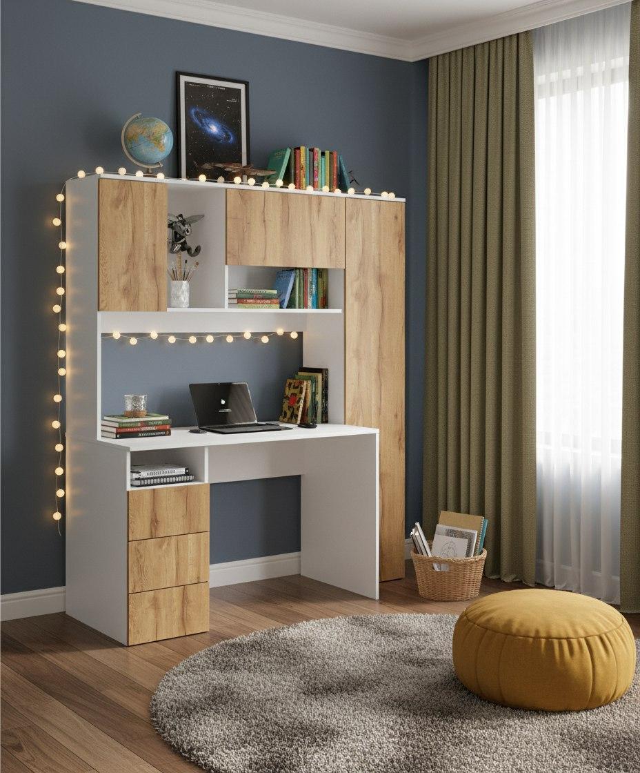 Стол Кабинет 1550 мм (корпус белый + фасады дуб золотистый). Левый/правый от Династия Kids