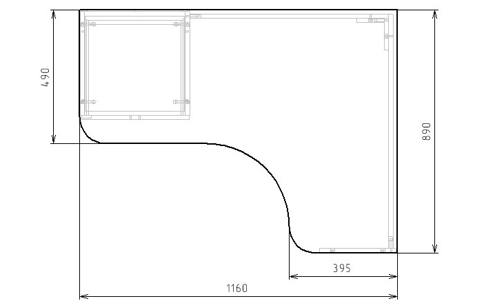 Габариты стола: ширина 1160 х высота 750 х глубина 890 мм