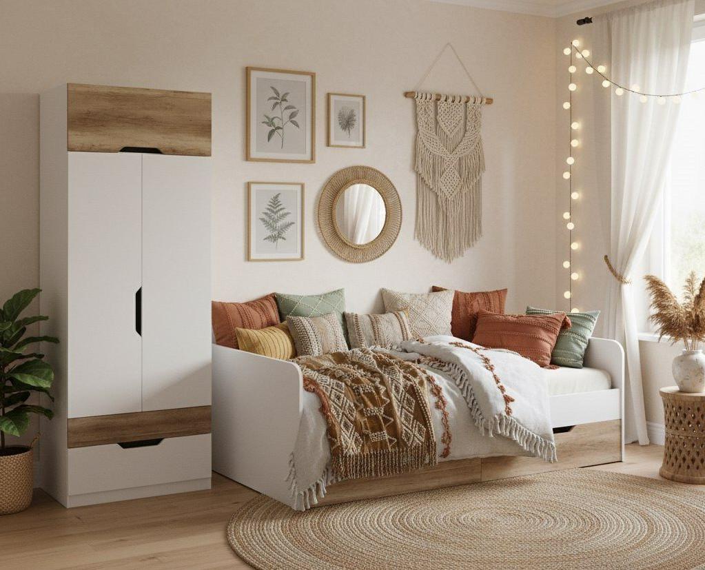 Кровать Норд + шкаф Лайт Лофт + стеллаж