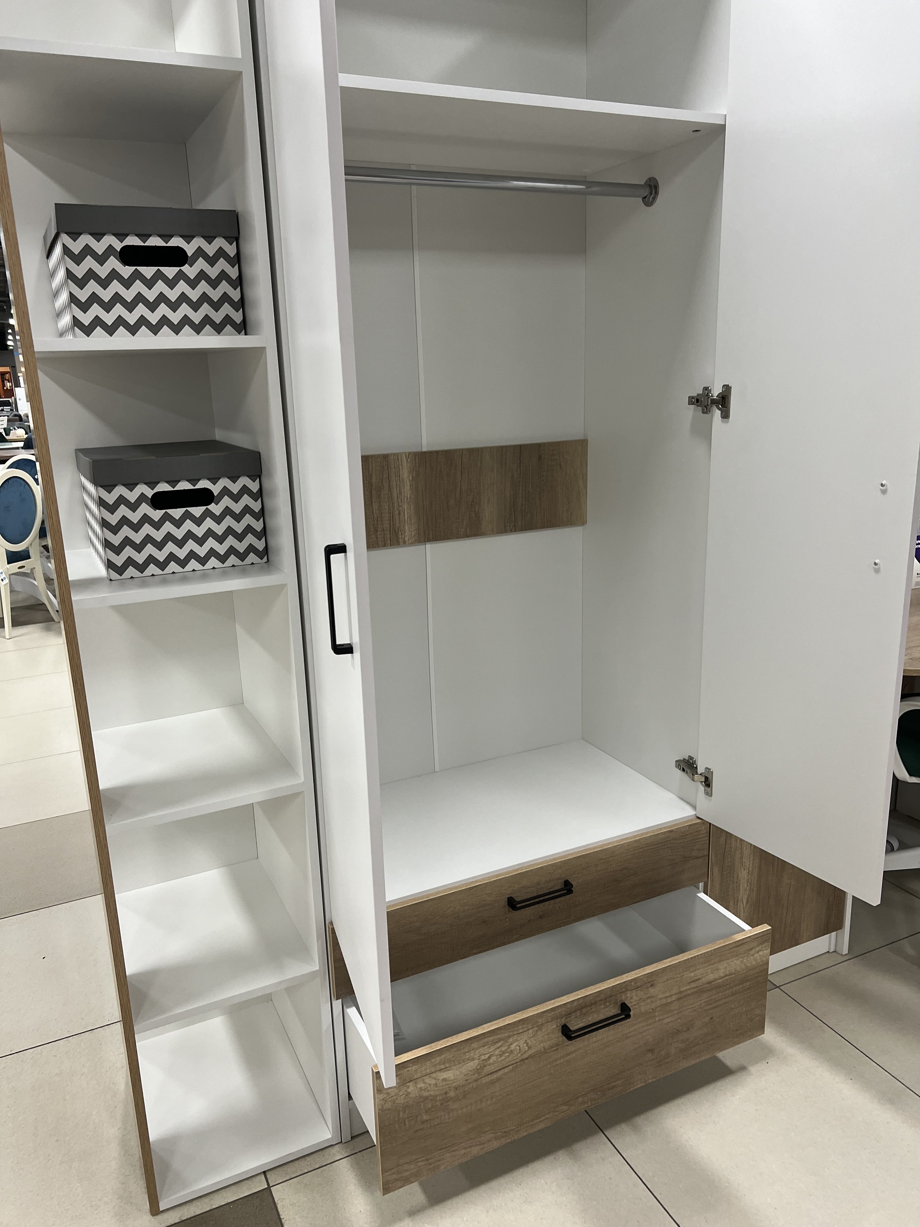 Мебель выполнена из сертифицированного, российского, качественного, экологически чистого ЛДСП Е0,5 в сочетании цветов дуб каньон + белый.