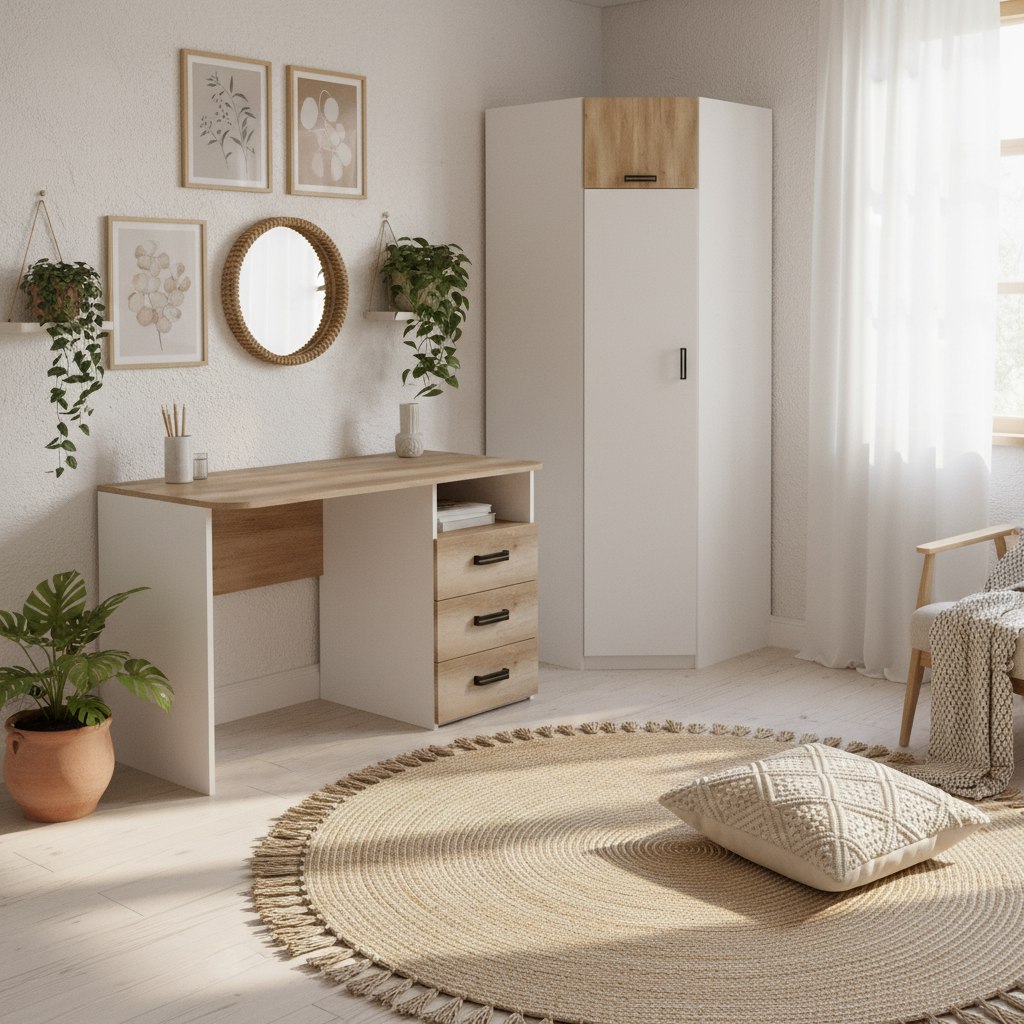 Мебель выполнена из сертифицированного, качественного, экологически чистого ЛДСП Е0,5 в сочетании цветов дуб каньон + белый