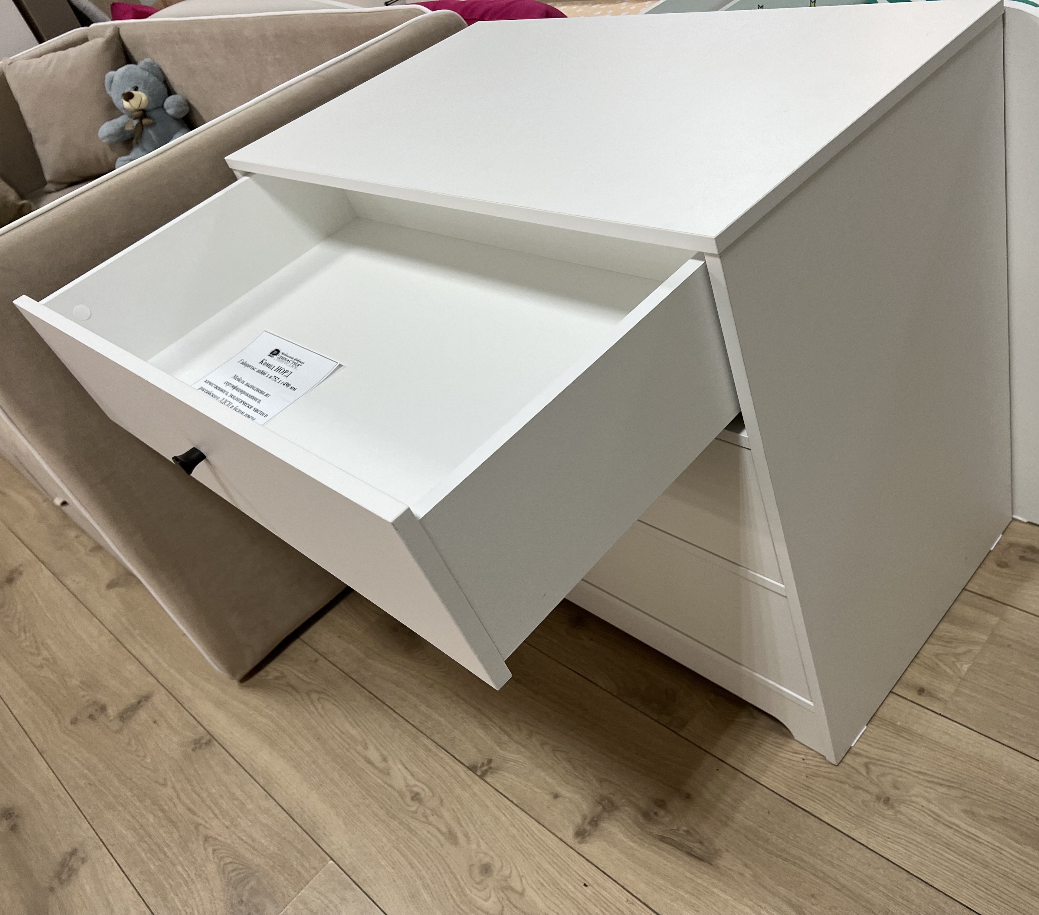 В комод встроены три выдвижных ящика на направляющих скрытого монтажа с ДОВОДЧИКАМИ.
