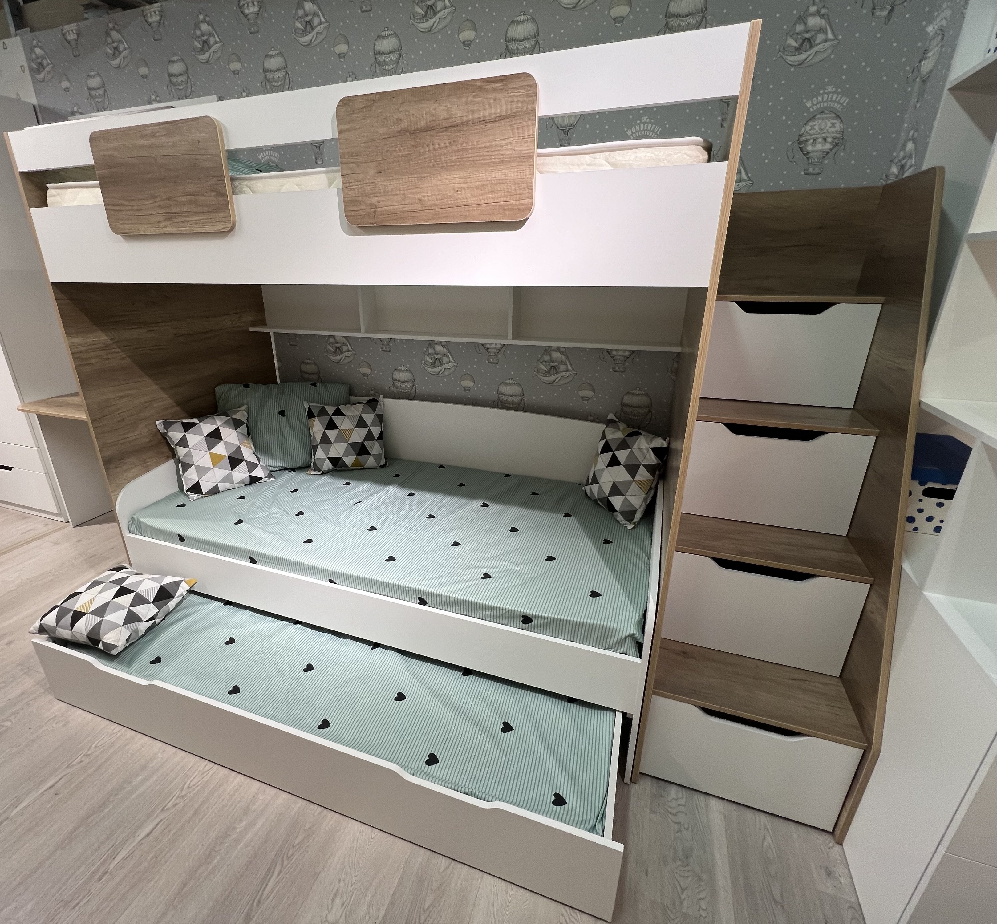 Вместо них - цельный и прочный настил из ЛДСП, который выдерживает сверхвысокую нагрузку и позволяет расположиться даже взрослому с ребенком.