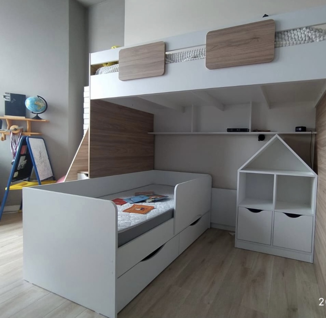 Вместо них - цельный и прочный настил из ЛДСП, который выдерживает сверхвысокую нагрузку и позволяет расположиться даже взрослому с ребенком.