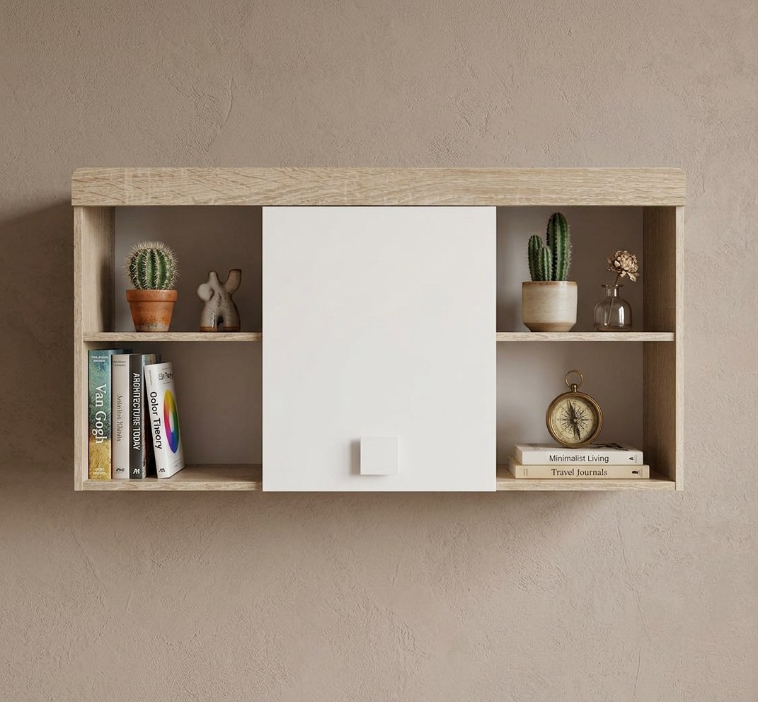 Оттенок натурального дерева "дуб сонома" дает ощущение комфорта и единения с природой, а воздушный белый цвет в интерьере работает как основа для ярких штрихов.