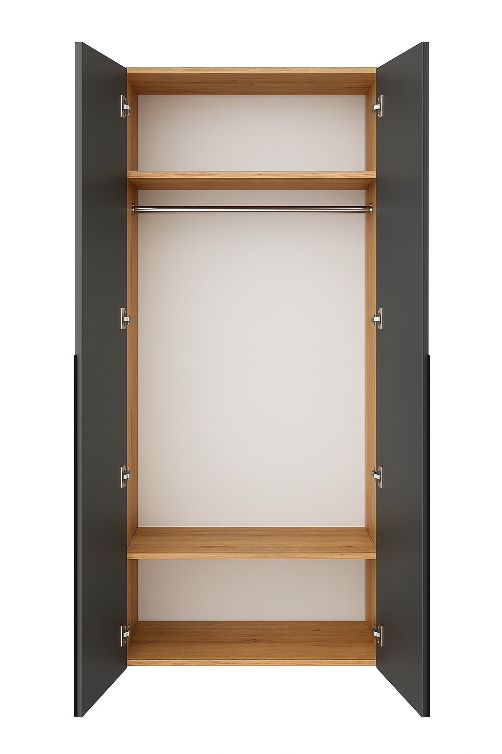 Распашной двухстворчатый шкаф + угловой шкаф + стеллаж переходной + пенал коллекции Брайт Графит