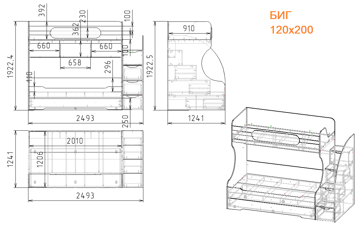 Высокая нагрузка на спальные места. Прочные ящики. Высокий, безопасный бортик!