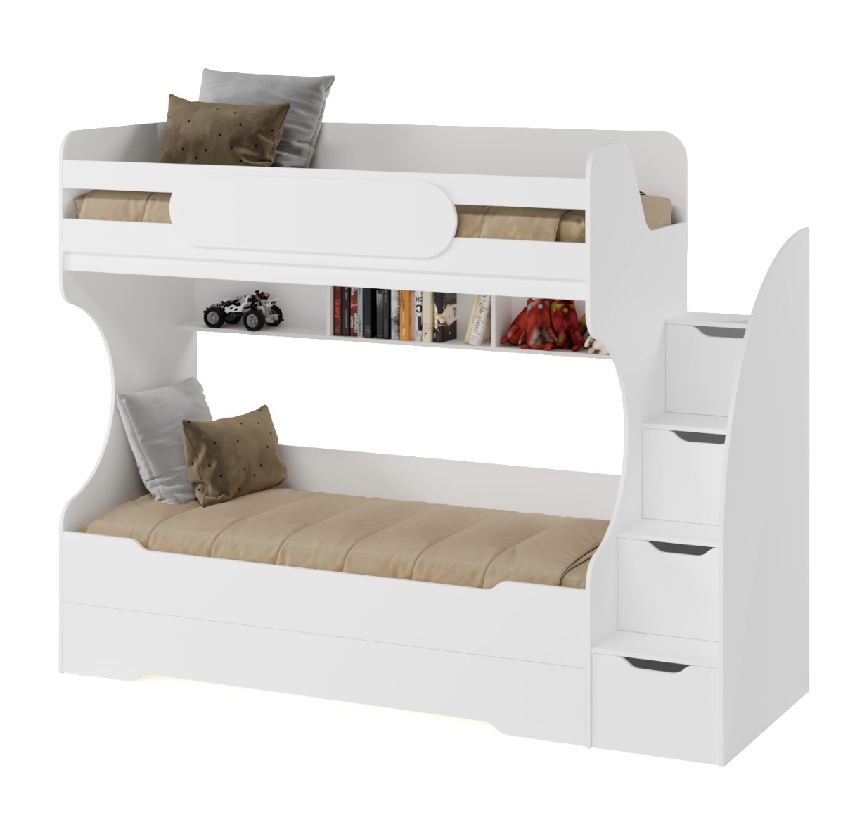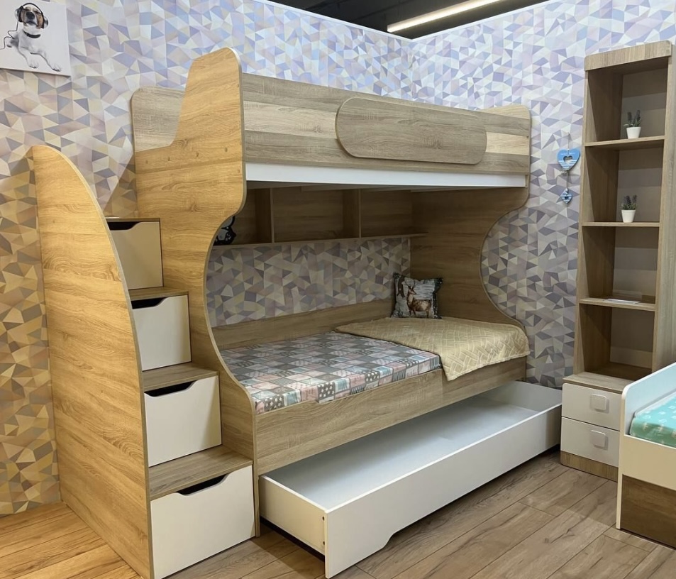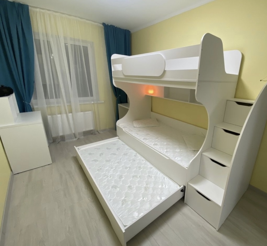 Вместо них - цельный и прочный настил из ЛДСП, который выдерживает сверхвысокую нагрузку и позволяет расположиться даже взрослому с ребенком.
